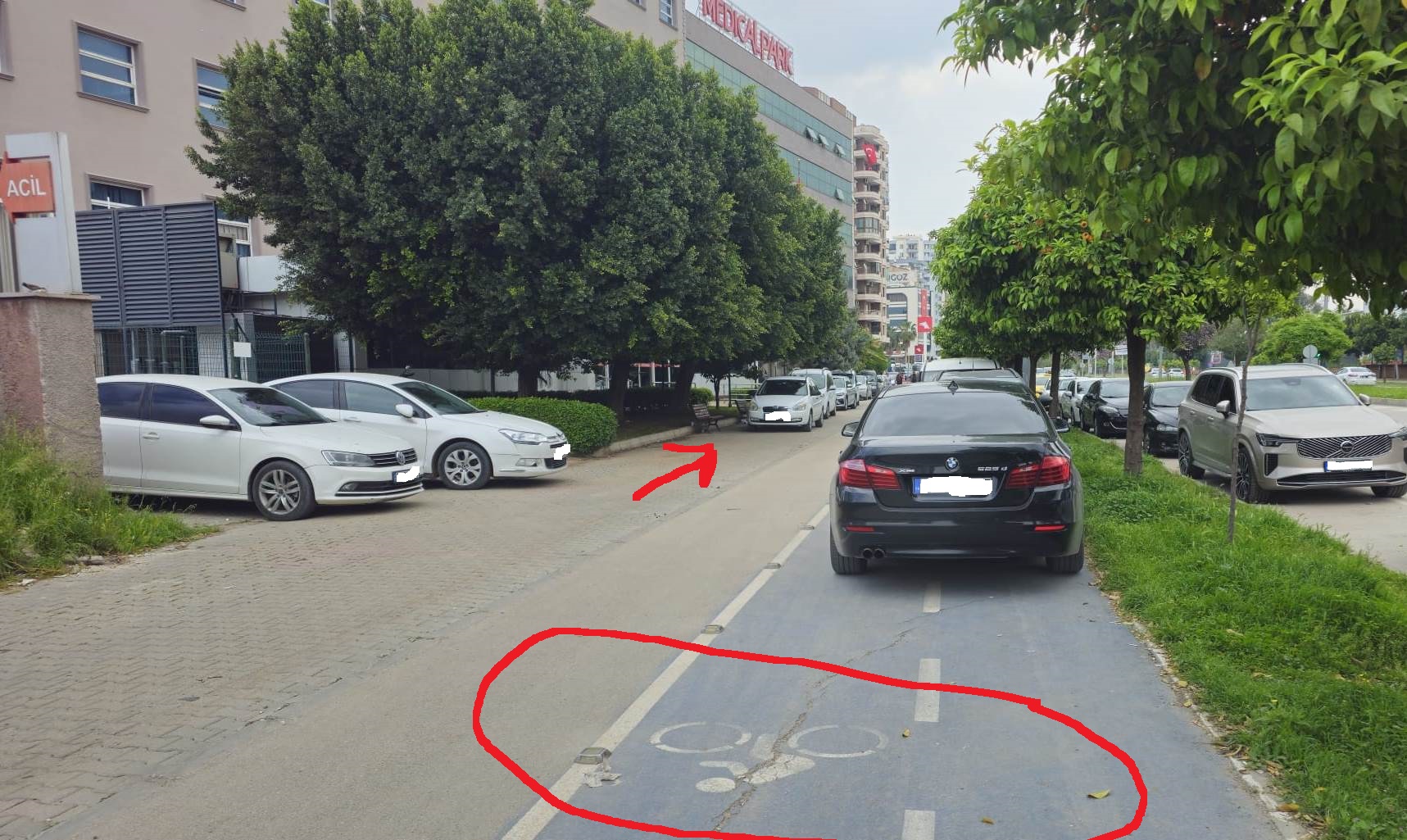 Mustafa Kemalpaşa Bulvarı üzerinde yer alan Medikal Park Hastanesi’nin kaldırımları ile bisiklet yolunun hastaların araçları tarafından işgal edilmesi nedeniyle vatandaşlar durumu yetkililere şikâyet ettiler.