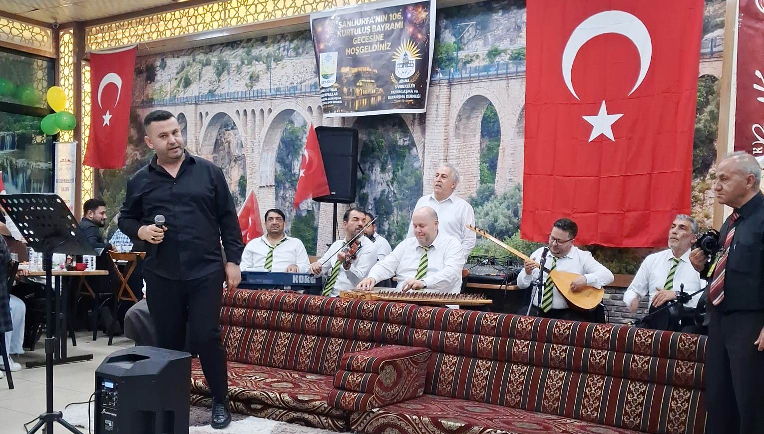 Şanlıurfa’nın Kurtuluşu’nun 106. yıl dönümü, Seyhan Şanlıurfalılar Derneği ile Siverekliler Derneği’nin ortak organizasyonunda düzenlenen sıra gecesiyle adeta bir kültür şölenine dönüştü.Geceye binin üzerinde Şanlıurfalı katıldı.