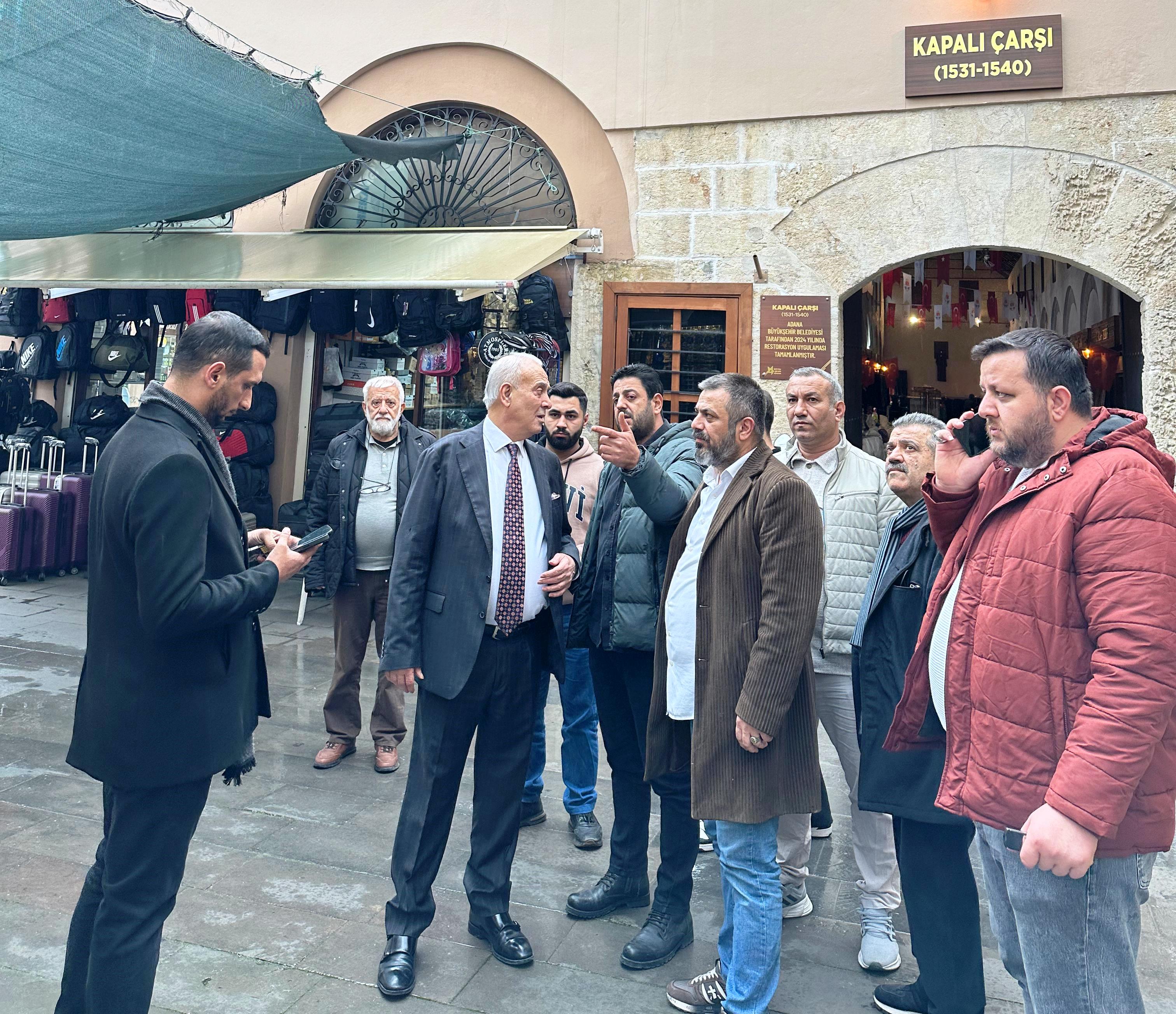 MHP Adana İl Başkanı Yusuf Kanlı, saha çalışmaları kapsamında gerçekleştirdiği ziyarette ilk olarak Tarihî Adana Büyüksaat Çarşısı Esnaf ve Kültür Derneği Başkanı Murat Bozkurt ve yönetim kurulu üyeleriyle bir araya geldi. Çarşının kültürel dokusunun korunması ve ticaretin canlandırılması üzerine istişarelerde bulunulan görüşmenin ardından Kanlı, esnaf turuna çıktı.