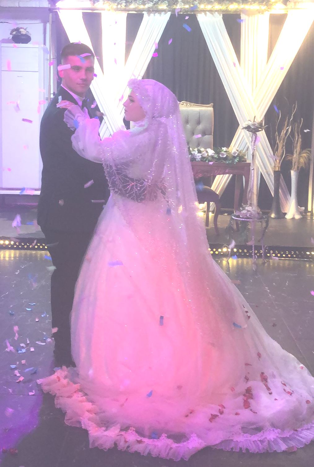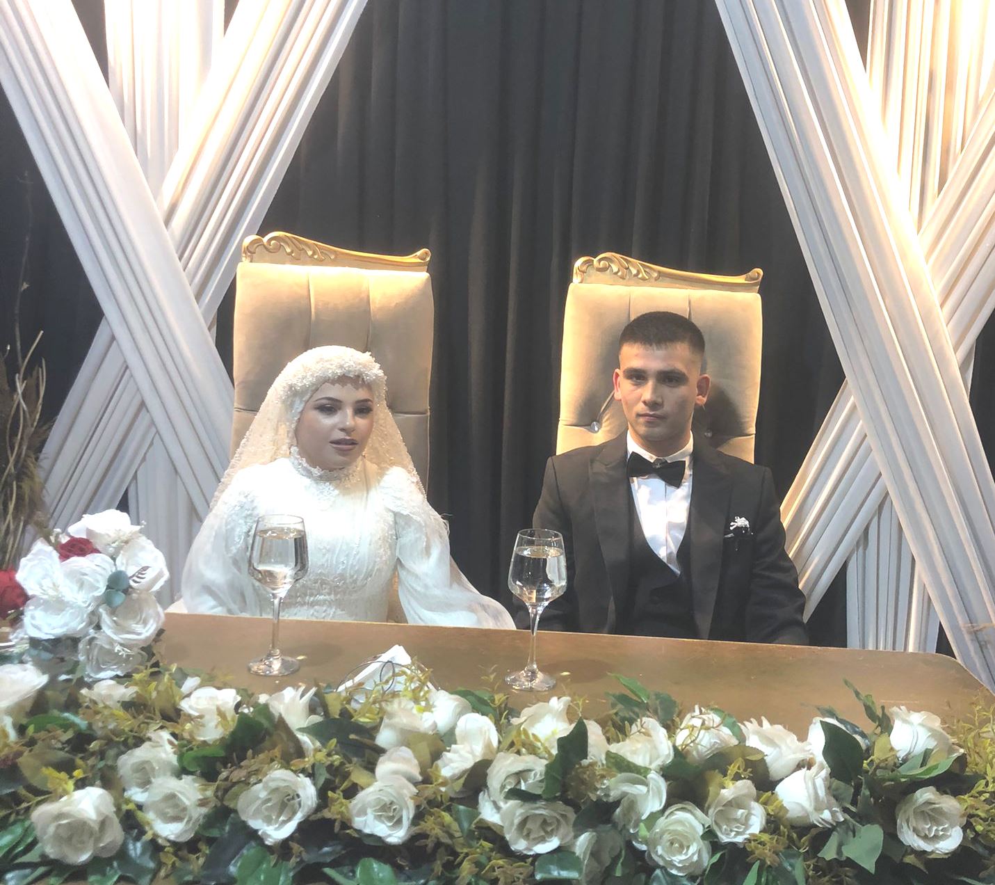 Düğünün başlangıcında gelin ile damat güzel bir müzik eşliğinde salona giriş yaparak ilk dansı gerçekleştirdiler. Davetliler de gelin ve damada pistte eşlik etti.