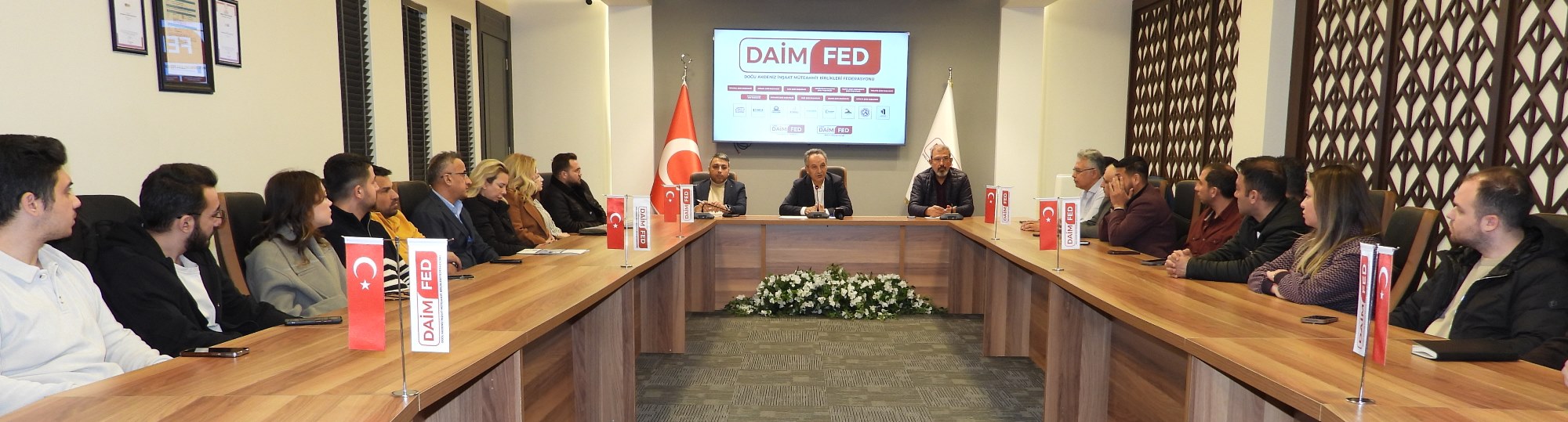 Doğu Akdeniz İnşaat Müteahhit Birlikleri Federasyonu’nun (DAİMFED) haftalık toplantısı, Genel Başkan Mustafa Karslıoğlu başkanlığında federasyonun genel merkez binasında gerçekleştirildi. Toplantı kapsamında Kent ve Yerel Yönetimler Uzmanı Oğuz Şahin tarafından ‘Yağmur suyu hasadı ve gri su geri kazanım sistemleri’ne yönelik bilgilendirme semineri verildi.