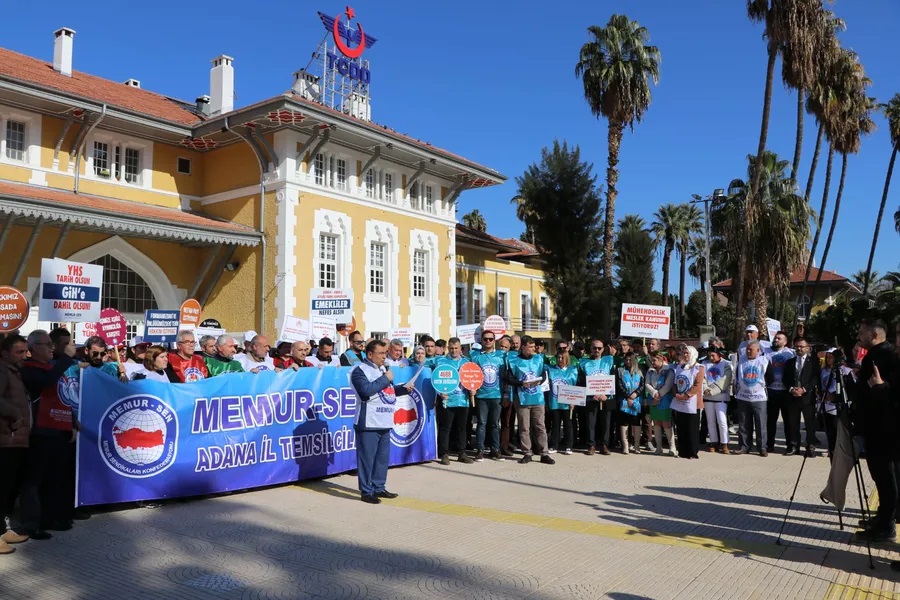 Memur-Sen Adana Şube Başkanı Bekir Nennioğlu, “Ücretlerdeki dengesizlik ve gelirdeki adaletsizlik artık görmezden gelinemez bir noktaya geldi. Bu aşamadan sonra kamuda yaşanan huzursuzluğu artık kimse “görmedim, duymadım, bilmiyorum” diyemez. Bu çarpıklık derhal ve kalıcı olarak düzeltilmeli, kamuda iş barışı ve huzuru yeniden tesis edilmelidir. Bu yap-boz sisteminden artık vazgeçilmeli, 2 yılda bir sistemi bozan anlayıştan dönülmelidir. Sebebi olmadığımız enflasyonun faturasını sabit gelirliler olarak bizlere çıkarılmasını asla kabul etmiyoruz. Bunun için hem Kamu Personel sisteminde hem de sendika yasamızda köklü değişiklikler, reformlar yapılmalıdır" şeklinde konuştu.
