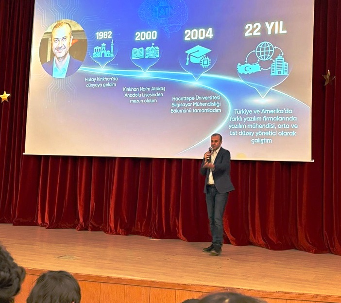 Udemy Türkiye Ülke Yöneticisi ve Kıdemli Mühendislik Direktörü Okan Kahriman, eğitimde fark yaratan Özel Eral Okulları’nın Türkmenbaşı Kampüsü Mehmet Altıok Konferans Salonu’nda gerçekleşen seminere San Francisco’dan konuk olarak küresel teknoloji dünyasının kapılarını araladı.